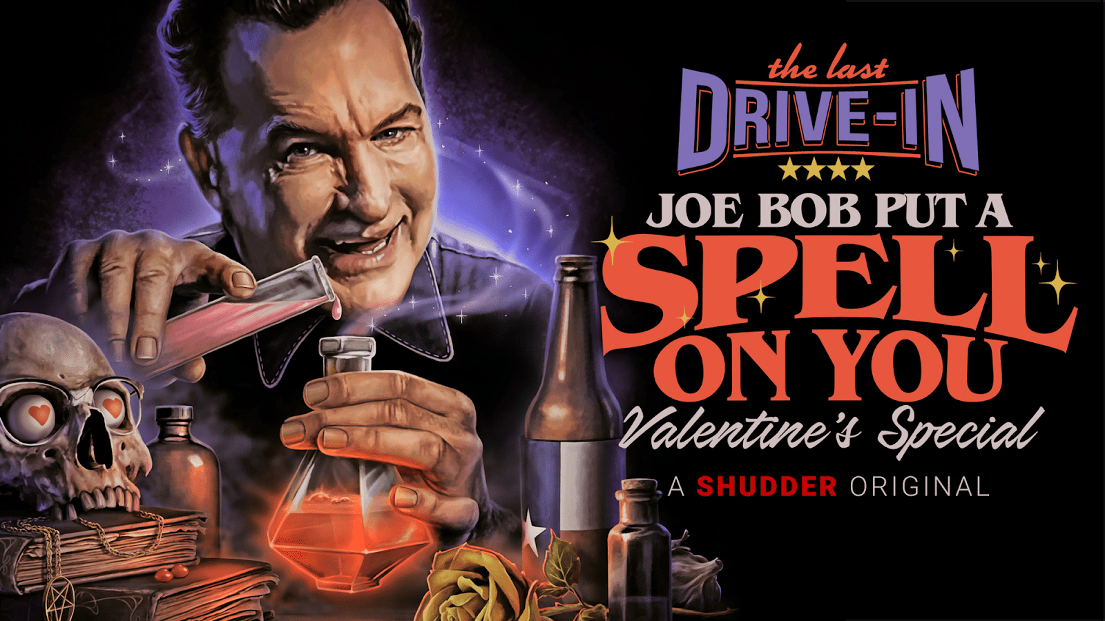 Love is in the air for the first-ever Last Drive-In Valentine’s Day special! Joe Bob Briggs hosts a double feature of two unusual films about the power (and horror) of love. Dim the lights, pour a glass of bubbly—Dom Perignon or Lone Star, your choice—and join us on the Shudder TV feed for the live premiere Friday, February 12, or watch on demand beginning Sunday, February 14.